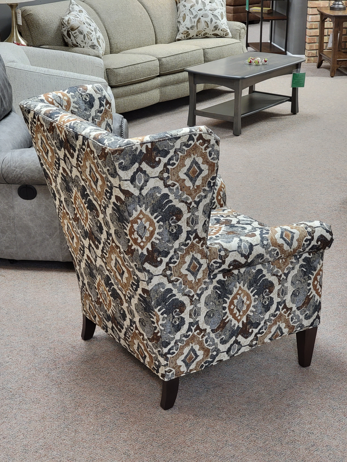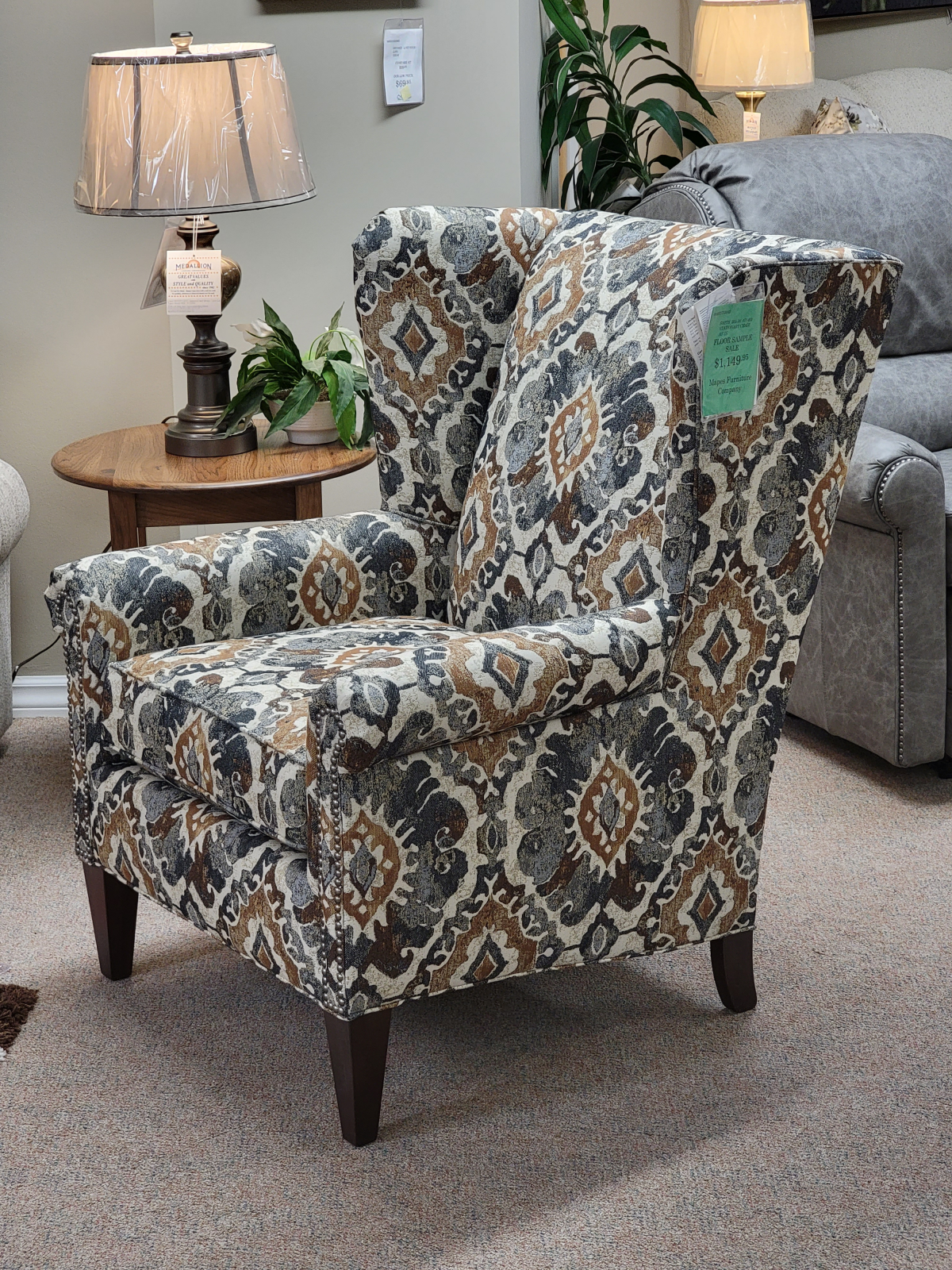 Item Description Add a touch of elegance to any room with this stunning winged accent chair. Expertly crafted in the United States, this chair combines timeless style with exceptional comfort. The graceful winged design adds a sophisticated flair, while the high-quality construction ensures durability and lasting beauty.