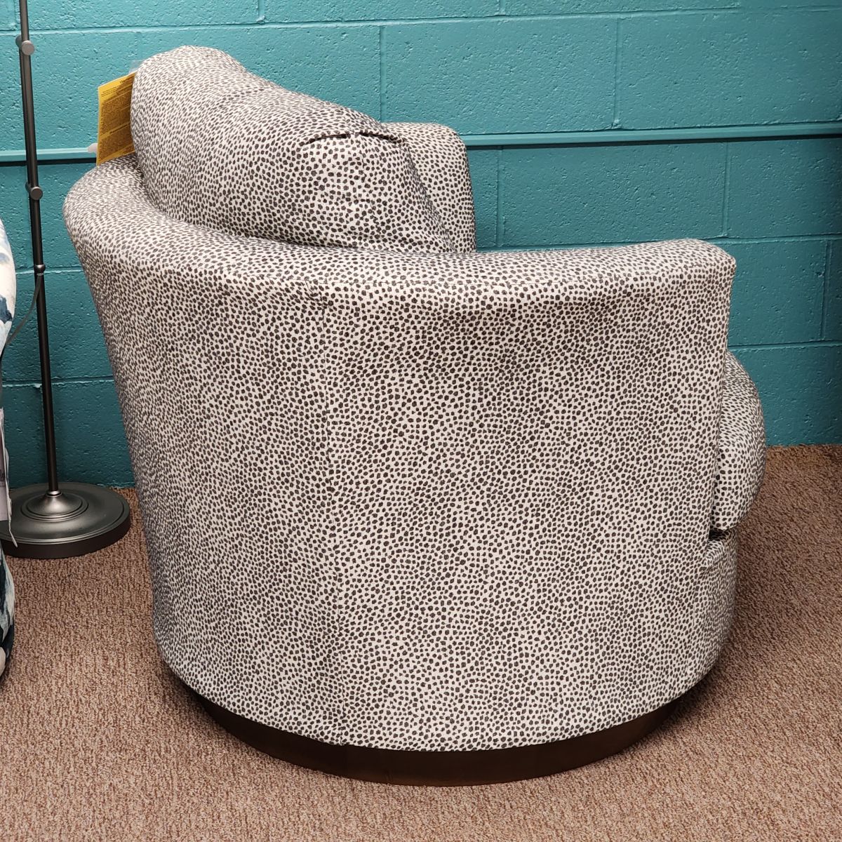 Item Description The Tina Swivel Chair has a fully curved back and barrel silhouette for a pop of retro-mod charm that fits any space. The low profile base discreetly hides the graceful swivel action. Designed with a reversible*, solid foam T-seat for long-lasting comfort and support. Plus, with zipper access in the lower back, you can adjust the amount of pillow fibers in the back to perfect your comfort sit.