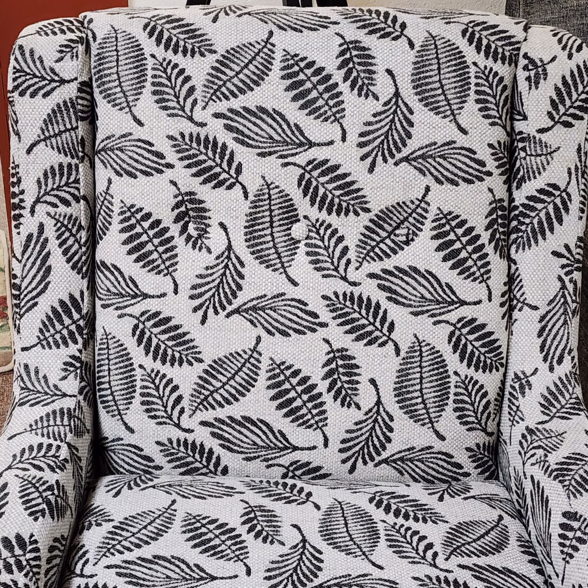 Item Description This Ezra chair adds a pop of mid-century flair to any room! Sitting atop a wooden swivel base, the chair boasts a single row of buttons across the back and a sleek non-welted silhouette.