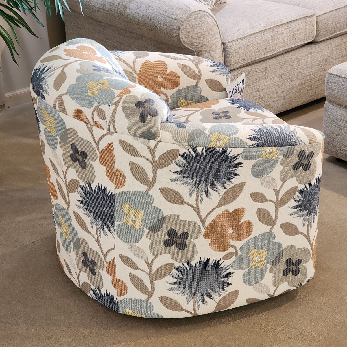 Item Description The Camden chair is the perfect accent piece for any decor for both style and comfort reasons. This casually styled chair which both swivels and glides to maximize comfort will complement your home.