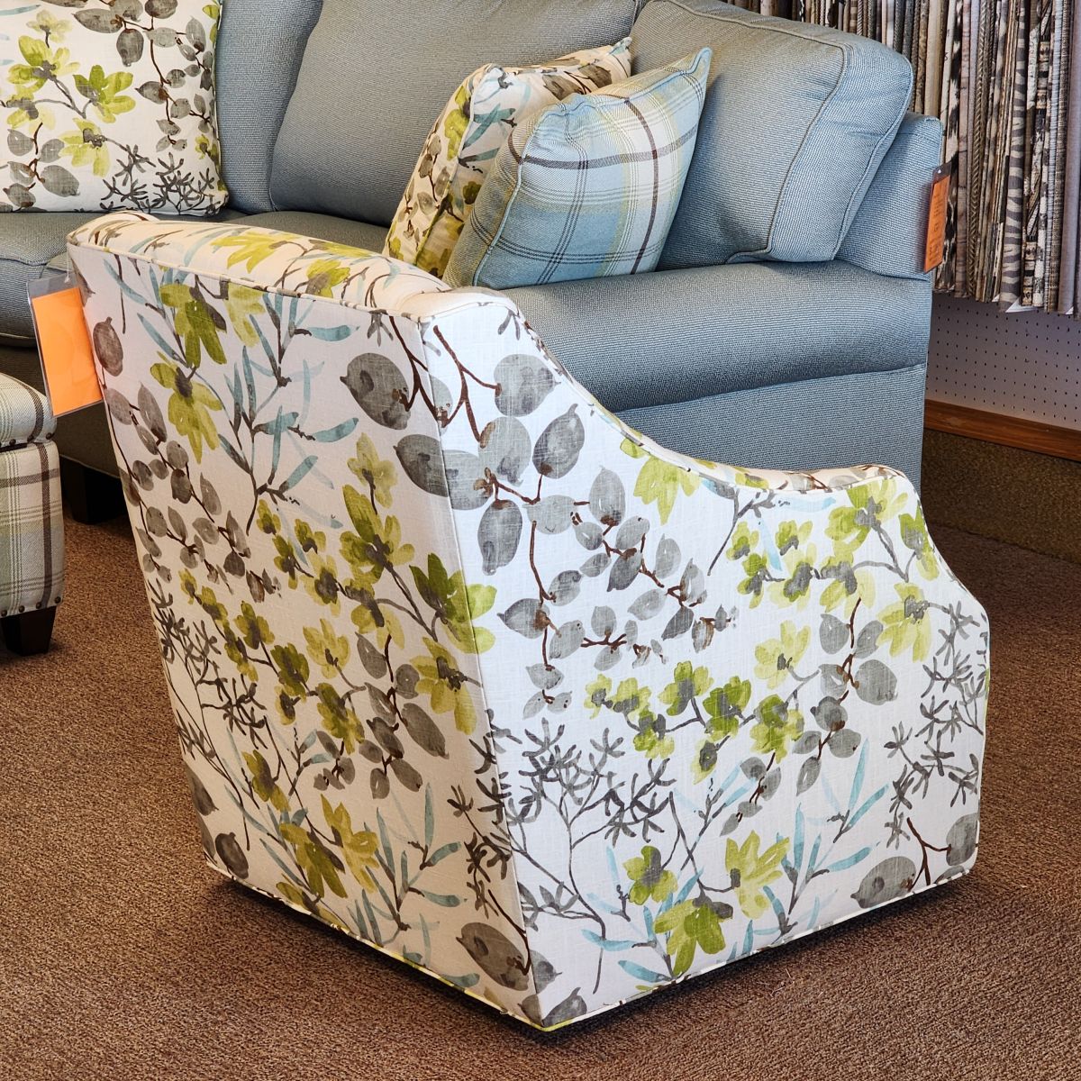 Item Description The Heather swivel chair features clean lines, comfort and mobility. A slim profile brings big comfort to smaller spaces.