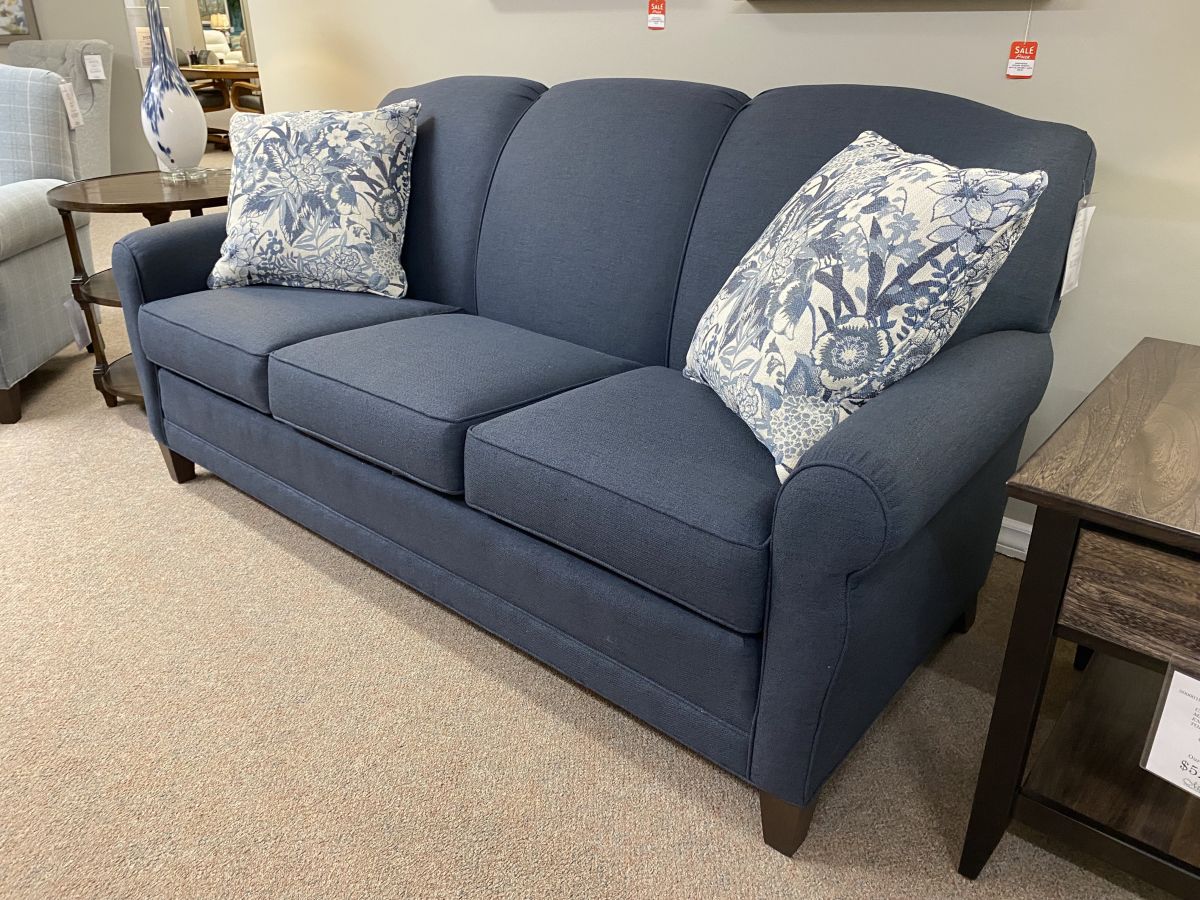 Item Description Smith Brothers 374-10 sofa adds relaxed elegance with contrasting throw pillows. This three-cushion, stationary sofa from their 374 Collection is crafted from kiln-dried maple hardwood; double-doweled joints, corner blocks, and built-in legs to ensure durability.