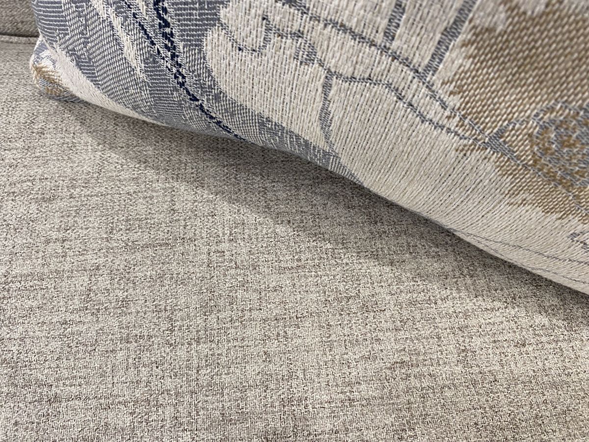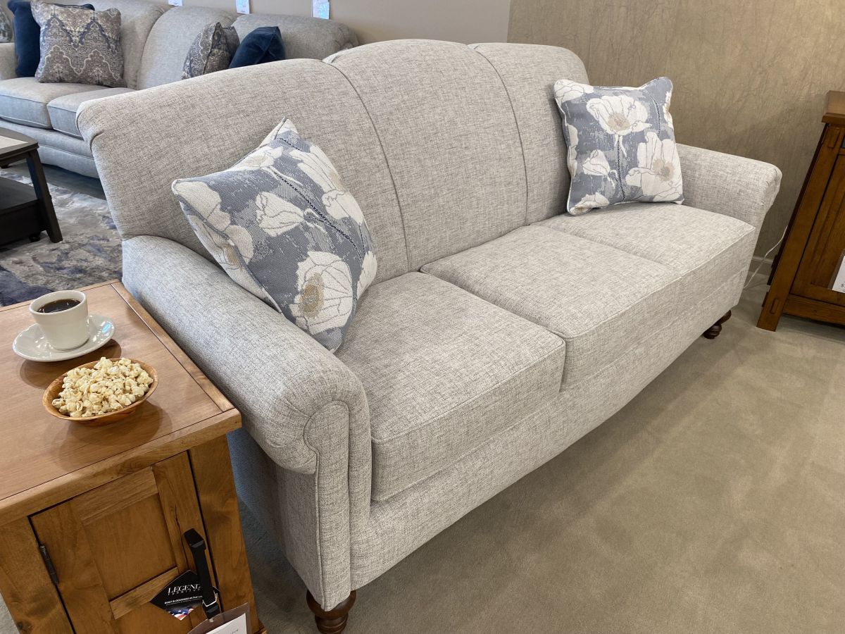 Item Description If you are looking for a sofa with loads of charm, then the Eliza might be just what you're looking for. Crafted in Hadley Linen fabric with Leanna Chambray contrast pillows. Its rolled panel arm, camel back, and curved front rail, give it a ton of style!