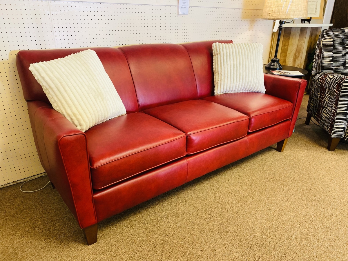 Item Description England's Collegedale collection will lend a retro feel to your living area. This silhouette is small enough to fit almost any family room, yet large enough to accommodate your guests. With its clean lines, matching welt, and high tapered legs, you will certainly enjoy its sophisticated profile. Crafted in Revelation Barn Red leather, this piece says you've arrived in style.