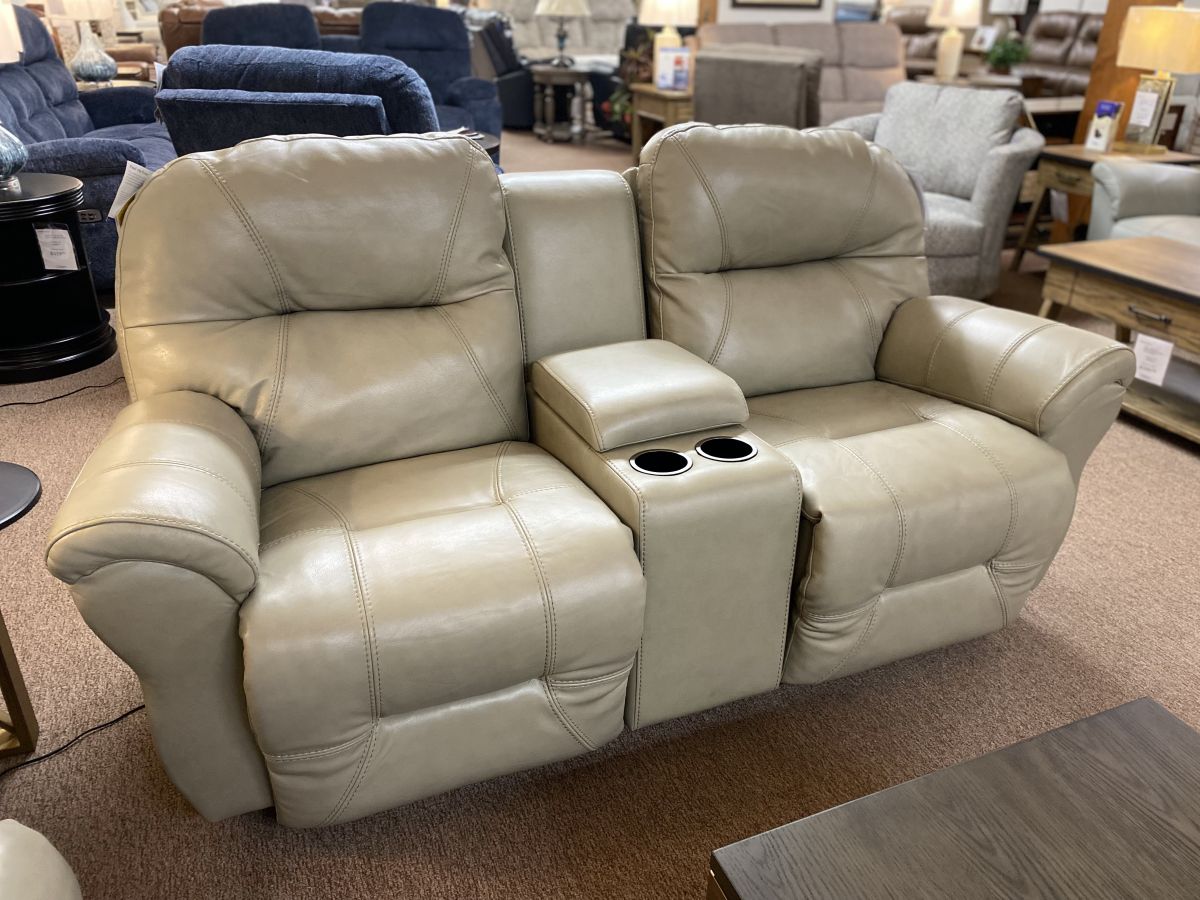 Item Description The smooth rounded, cushion fiber wrapped arms sitting atop the hourglass shaped lower arms of this stunning set say just one word: Class. Best's Bodie Collection incorporates our Performa-Weave technology in the chaise pad to ensure that you experience ultra comfort that's sure to last. The single seam line accenting on the chaise and seat give them that extra "pop." A center stationary console with flip-up storage unit and cup holders to your reclining loveseat is perfect for a living room/home theater combination.
