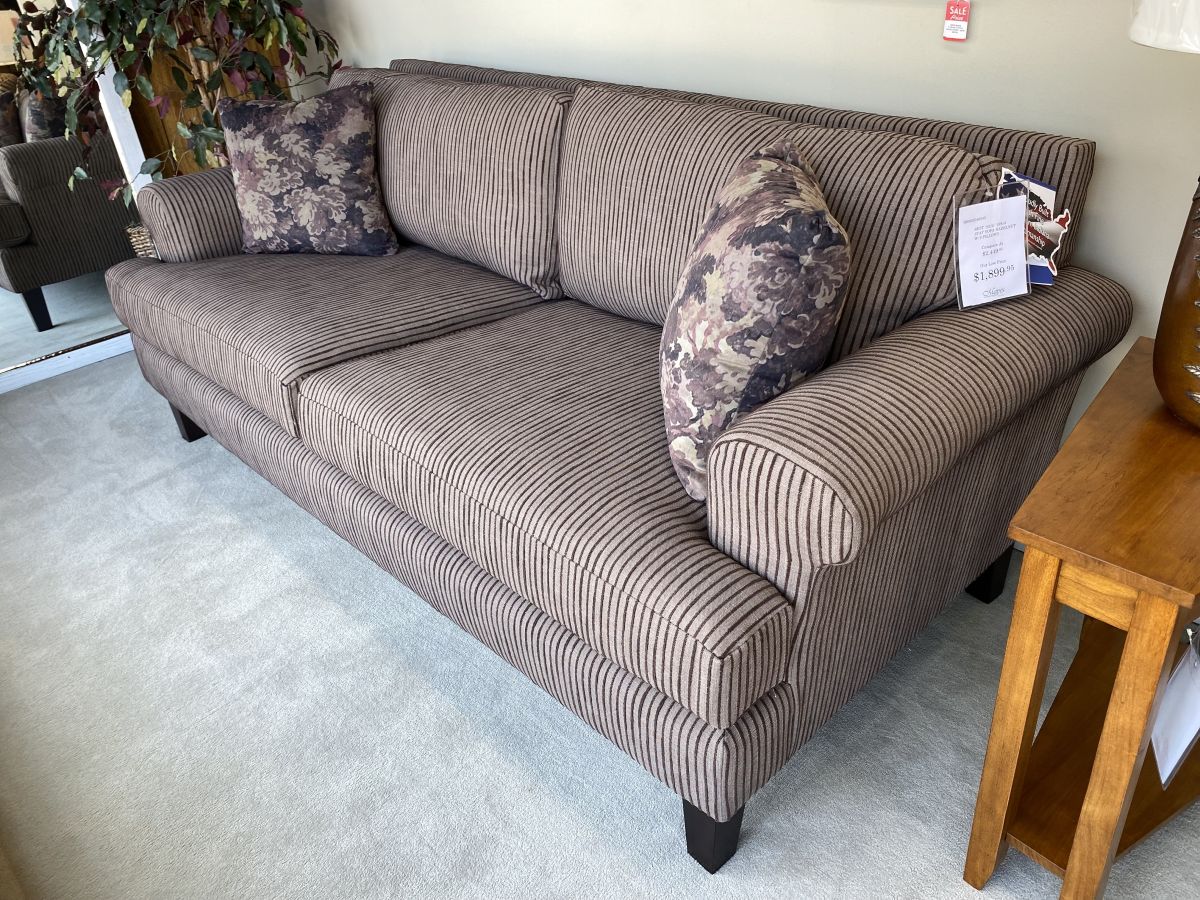 Item Description Where timeless charm meets modern ease. You must see this sofa. Textured Hazelnut fabric speaks style and comes with two Brown accent pillows that set this sofa off.