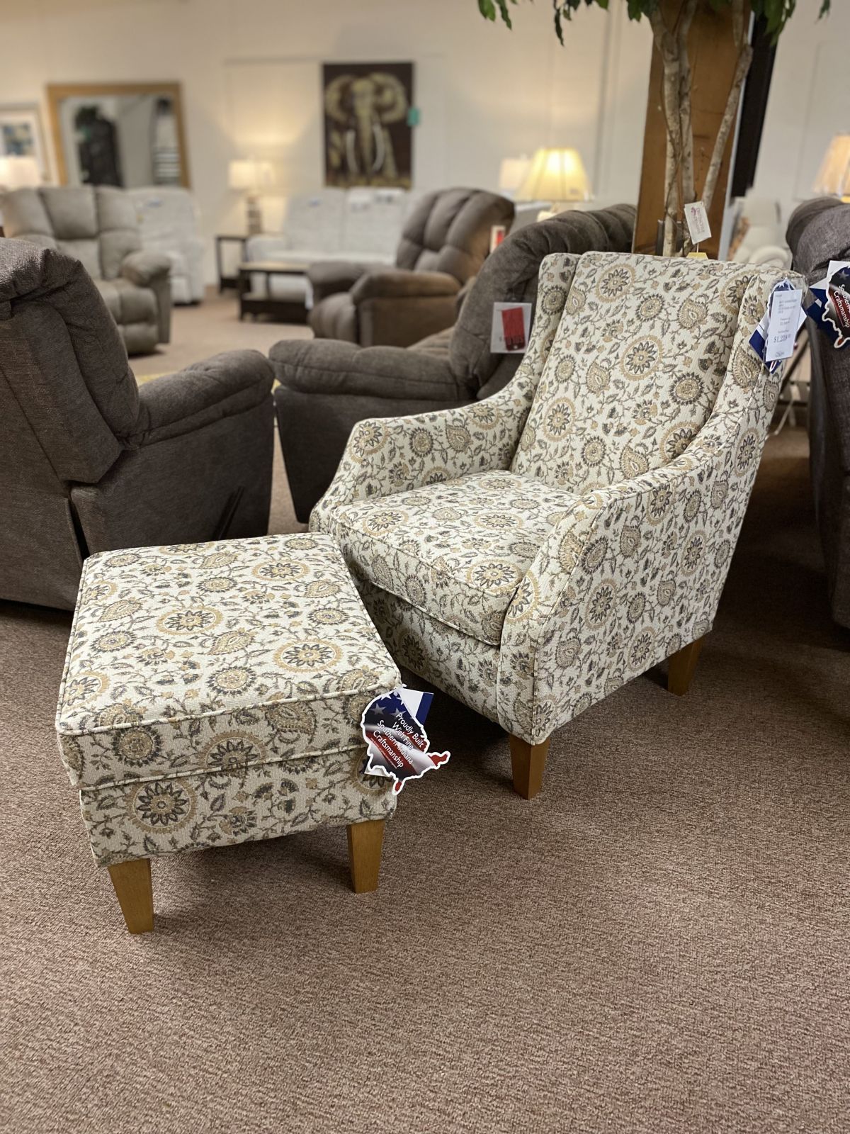 Item Description The Keatling accent chair brings refined comfort to any room with its graceful slope arms, gently flared back, and stately silhouette. Thoughtfully designed with a reversible seat cushion for lasting comfort and durability. This stately peice is supported by tapered wood legs and comes with a coordinating ottoman.