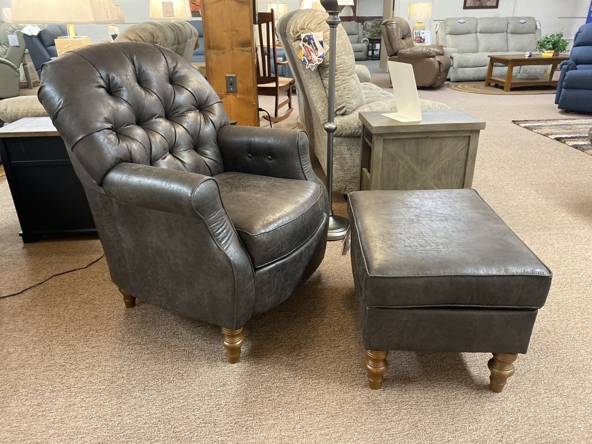 Item Description The invitation is always open to sit down with a good book or cozy up by a nice fire in this traditional chair. The precision details shine in the heavily button tufted back and arms, and extend to the floor with the charming turned wooden legs. Choose from hundreds of stylish fabrics. The matching ottoman invites you to kick up your feet and read another chapter.