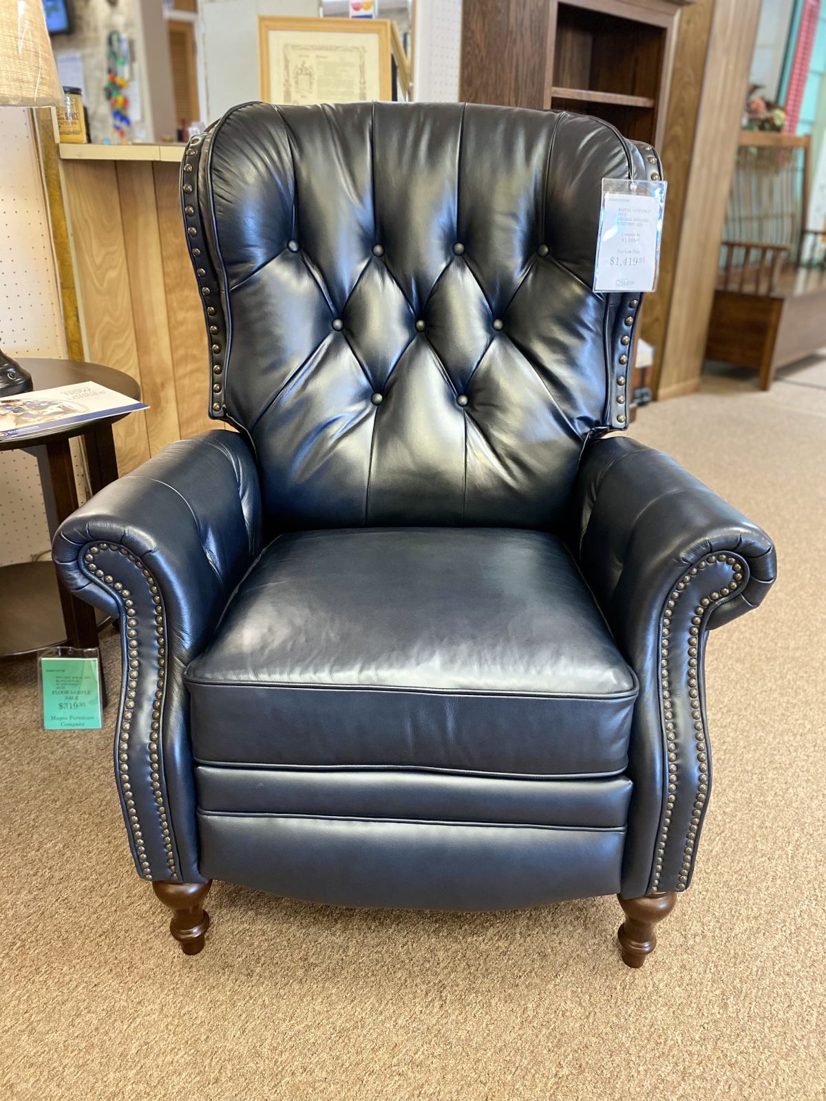 Item Description An updated classic with a unique 44.5” high barrel back with button tufting. This push thru the arms wingchair is accented with nail head trim, shaped ottoman board and knee back rolled arms. Welted, loose box seat cushion contains pocket coil springs with a down wrap that will provide years of comfort. Hand carved wood legs in a mahogany finish complete this look.