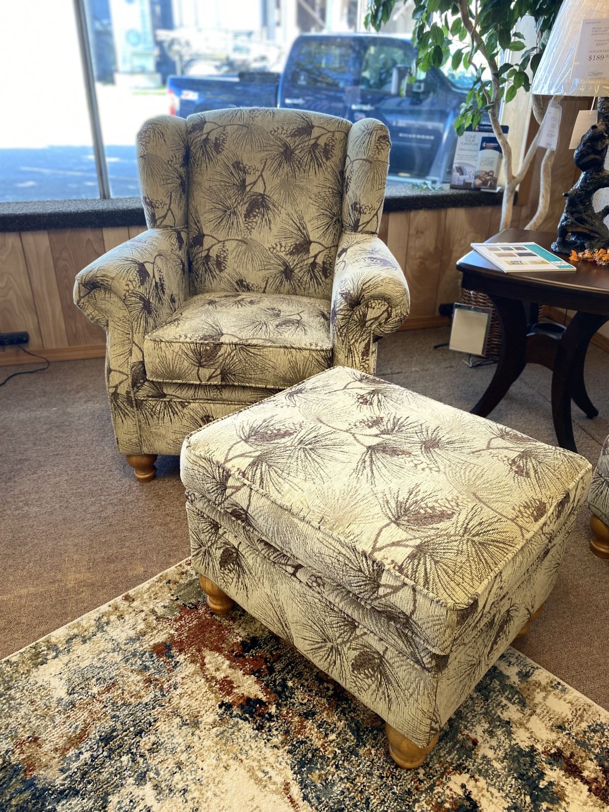 Item Description The Marshfield Somerset chair and ottoman is as comfortable as it is stylish. Covered in White Pine Dusk fabric and ready for you to sit with your favorite book and a cup of cocoa.