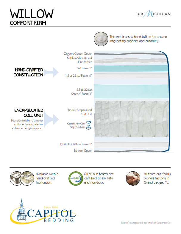 Mattresses Capitol Bedding w/WFHD #62 Capitol Bedding Willow w/WFHD #62