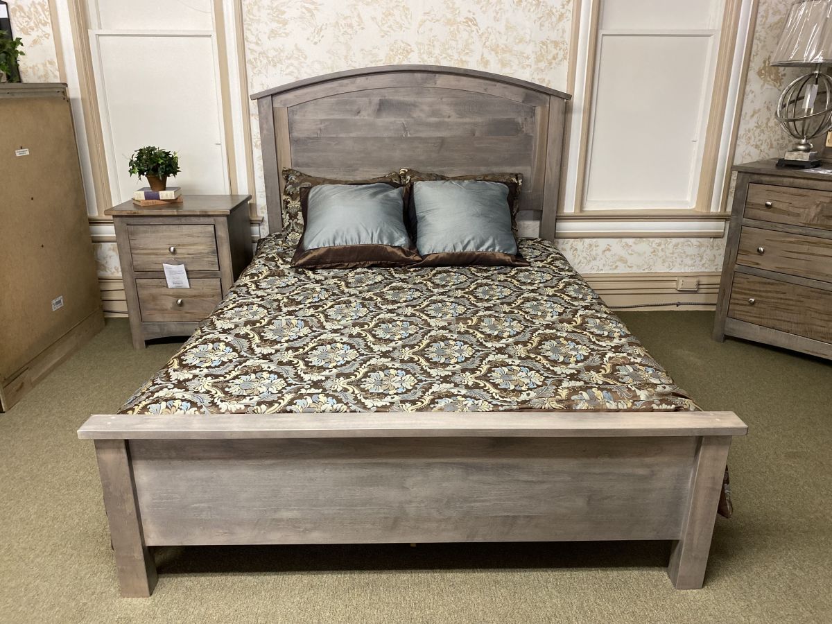 Item Description Solid ambrosia maple is used by the Amish to create this queen size panel bed. The gentle curve on the headboard softens the look.